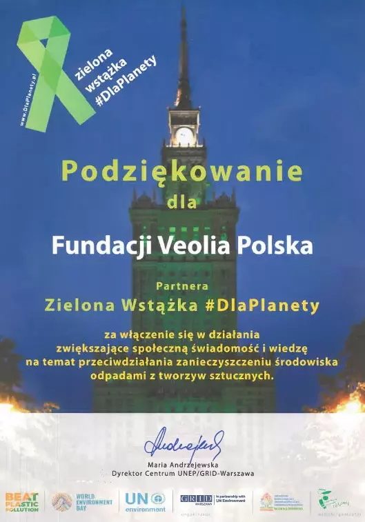 Grupa Veolia od ponad 20 lat w Polsce działa #DlaPlanety, a 5. czerwca „przypięła” symboliczną Zieloną Wstążkę, podkreślając zaangażowanie w działania chroniące środowisko i swoje zobowiązania na rzecz zrównoważonego rozwoju. We współpracy z Fundacją Veolia Polska, propaguje Cele Zrównoważonego Rozwoju ONZ, w tym szczególnie Celu 4: Jakościowa edukacja, Celu 11: Zrównoważone miasta i społeczności oraz Celu 15: Życie na lądzie i dąży do ich efektywnej realizacji. W ramach Partnerstwa SDGs „Razem dla Środowiska”, promuje także proekologiczne postawy wśród swoich interesariuszy.
