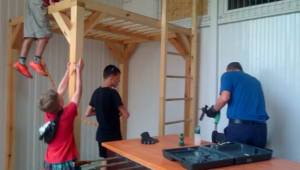 Fundacja Veolia Polska w czarodziejski sposób spełniła nasze marzenie i dzięki wielu godzinom ciężkiej pracy Wolontariusza – pana Sławka i dzięki fundacyjnemu funduszowi – mamy wspaniałe, czyste, schludne, ciekawe i nowe miejsce. Mamy bezpieczną antresolę do podciągania się, robienia materacowych domków, bujania się, rozładowywania energii i oglądania świata z wysoka. Mamy super wielki, składany stół pingpongowy, nową siatkę bezpieczeństwa, czyste ściany, światło i przestrzeń.