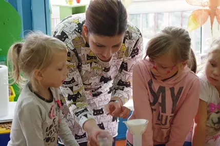 Tematem przewodnim była woda. Dzieci dowiedziały się jaki jest obieg wody w przyrodzie oraz skąd się bierze woda w kranie. Maluchy wykazały się sporą wiedzą i bardzo chętnie odpowiadały na pytania dotyczące oszczędzania wody. Po krótkiej pogadance przedszkolaki wraz z prowadzącą zajęcia Wolontariuszką Fundacji Veolia Polska przeprowadziły eksperymenty. Była to dla dzieci nie lada niespodzianka. W pierwszym eksperymencie Pani Agnieszka wytłumaczyła dzieciom na czym polega oczyszczanie wody a dzieci miały za zadanie przefiltrowanie brudnej wody. Drugie doświadczenie dotyczyło eliminowania zapachów – i z tym zadaniem mali ekolodzy świetnie sobie poradzili.
