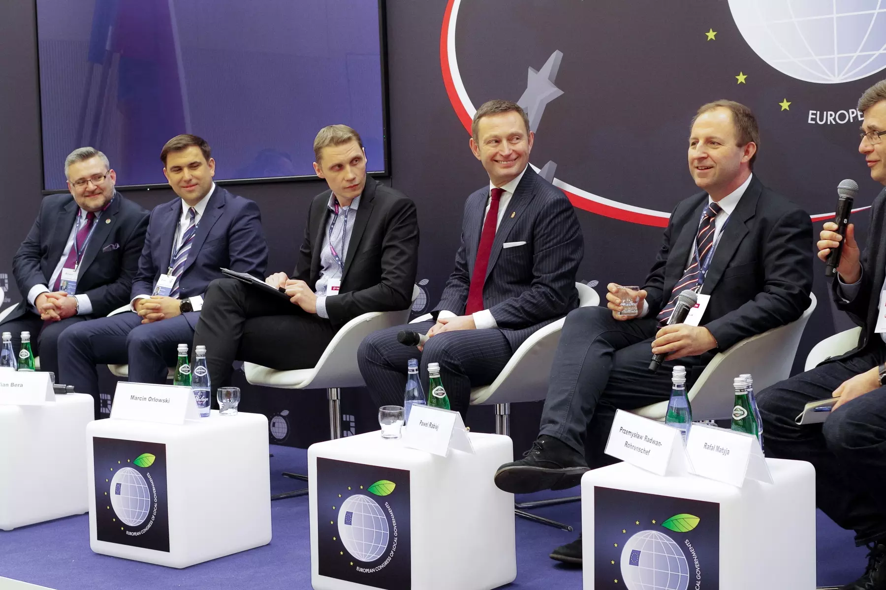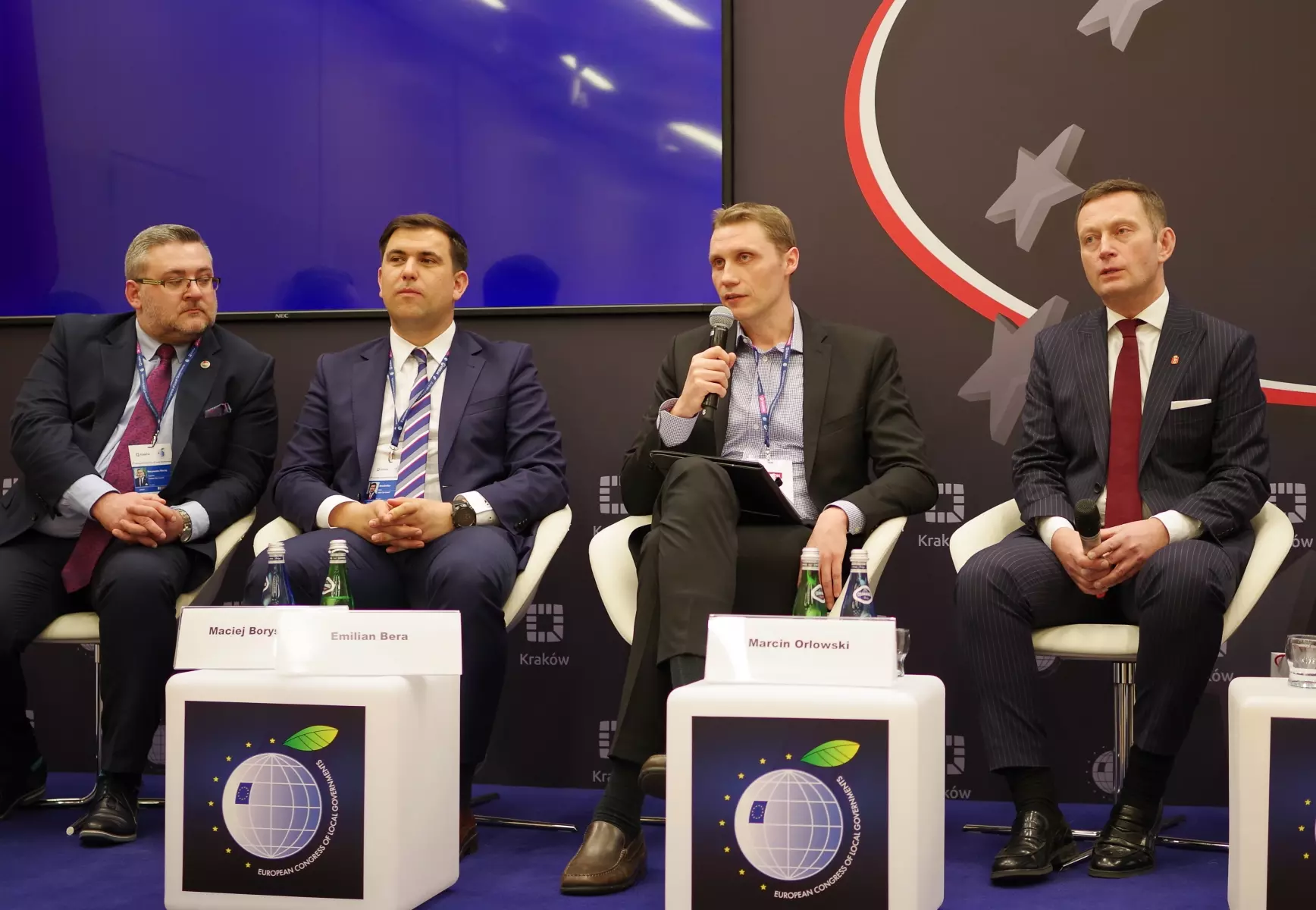 Debata „Liderzy miast wobec wyzwań przyszłości”, Europejski Kongres Samorządów. Kraków, 08-09.04.2019, Centrum Kongresowe ICE. Rozmówcy: