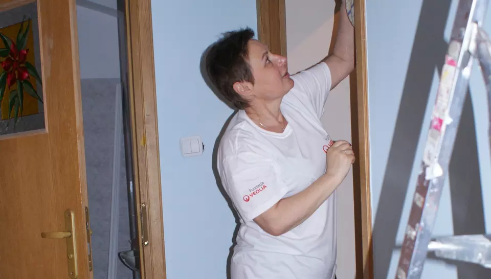 Następnie, zgodnie z wcześniej ustaloną listą, Wolontariusze zakupili wszystkie niezbędne narzędzia i farby do wykonania prac remontowych. Sześcioosobowa ekipa złożona z pracowników Veolii i ich najbliższych, przez dwa popołudnia wykonywała prace remontowe. Już po pierwszej godzinie, na wygładzonych i zagruntowanych ścianach pojawiły się nowe kolory, a poszczególne pomieszczenia z minuty na minutę nabierały nowego blasku. Nasi Wolontariusze w błyskawicznym tempie odnowili cztery pomieszczenia. Pomimo ciężkiej pracy i późnych godzin popołudniowych, humory wszystkim dopisywały. Po skończonej pracy odbyło się wielkie sprzątanie, dzięki czemu pracownicy Fundacji Zwalcz Nudę mogli następnego dnia wejść do czystego i odnowionego biura oraz planować działania dla swoich podopiecznych w odświeżonych pomieszczeniach.