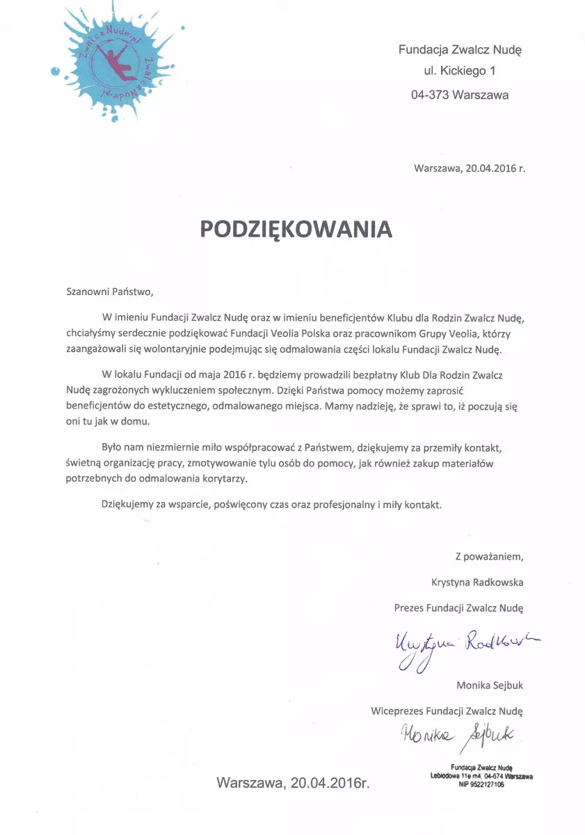 W lutym zaprosiliśmy pracowników Veolii do wsparcia Fundacji Zwalcz Nudę z warszawskiej Pragi. Efektem zaangażowania naszych Wolontariuszy są wyremontowane pomieszczenia fundacji oraz ręcznie wykonane dekoracje.