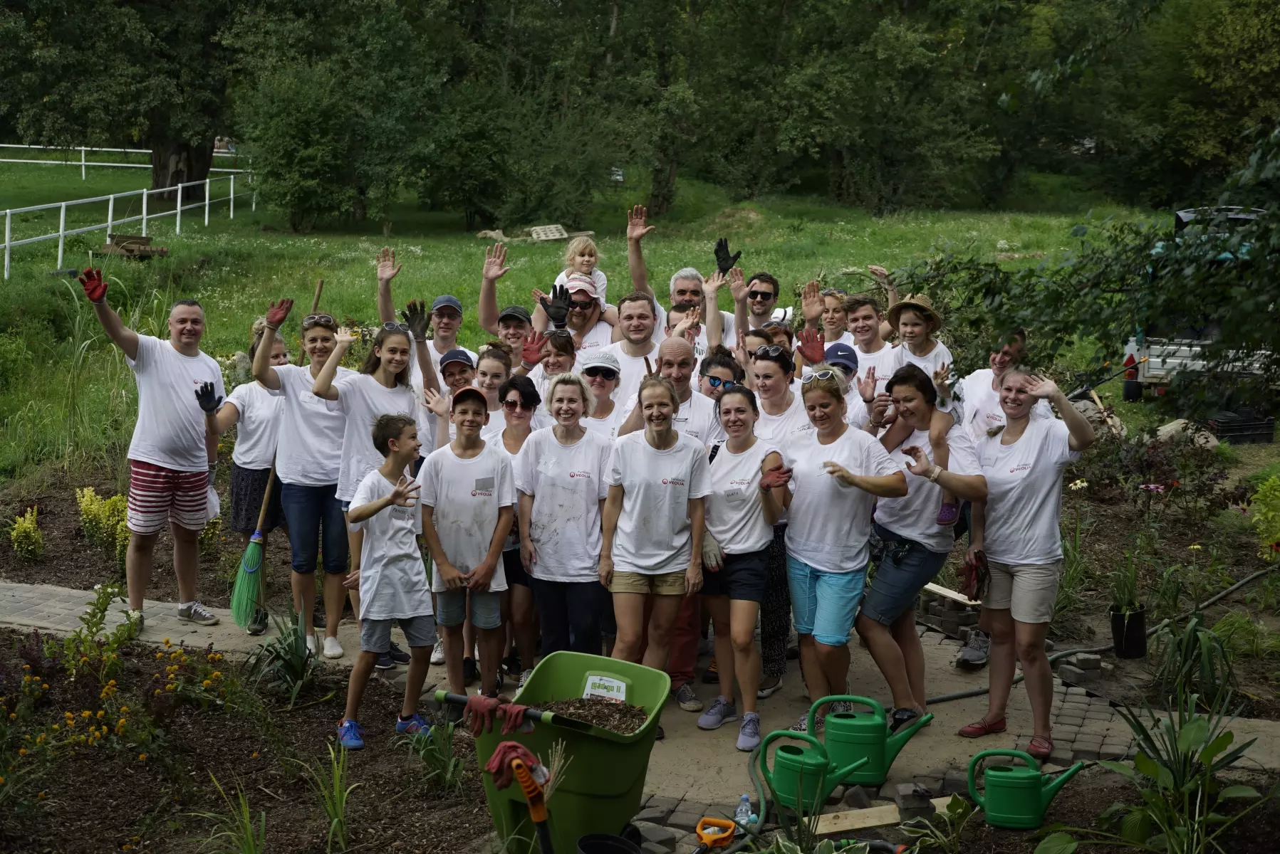 W sobotę 28 lipca, w sąsiedztwie malowniczego Wału Wiślanego w Warszawie, wolontariusze Fundacji Veolia Polska wspólnie z członkami swoich rodzin, utworzyli Zielone Podwórko Veolii. Dzięki ich zaangażowaniu i ciężkiej pracy, podopieczni Fundacji Pociechom będą mogli korzystać z pięknego ogrodu sensorycznego. Na terenie Zielonego Podwórka Veolii utworzone zostały ścieżki sensoryczne, a ponad 400 specjalnie dobranych roślin będzie dostarczać pożywienia pszczołom z pasieki znajdującej się na terenie Fundacji Pociechom.