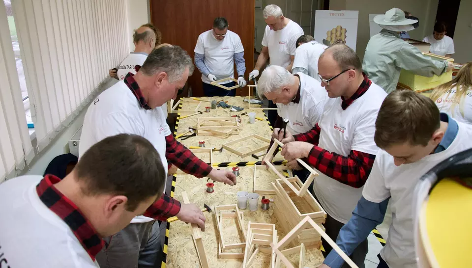 Fundacja Veolia Polska realizuje szereg inicjatyw z zakresu CSR, w tym także z obszaru bioróżnorodności - mówi Jowita Mytnik - Skała, Prezes Fundacji. W Zamościu połączyliśmy akcję wolontariacką z projektem dotyczącym bioróżnorodności i w ten sposób na terenie ciepłowni powstała pierwsza pasieka należąca do Veolii. Przygotowanie pasieki to nie tylko zbudowanie i zdobienie uli, ale także wykonanie wszystkich elementów mieszczących się w jego wnętrzu. Szybko podzieliliśmy się na grupy, panie impregnowały i ozdabiały ule, natomiast panowie zajęli się montażem ramek i nakładaniem węzy - mówi Marcin Orłowski, Prezes Zarządu Veolia Term SA. Podczas akcji mieliśmy okazję do wspólnej rozmowy na tematy zupełnie nie związane z pracą, a tym samym lepsze poznanie siebie nawzajem i integrację. Teraz trzymamy kciuki aby pszczoły, które zamieszkają u nas w Zamościu szybko się zadomowiły i oczywiście produkowały dużo miodu - dodaje Janusz Lewicki, Prezes Zarządu Veolia Wschód.
