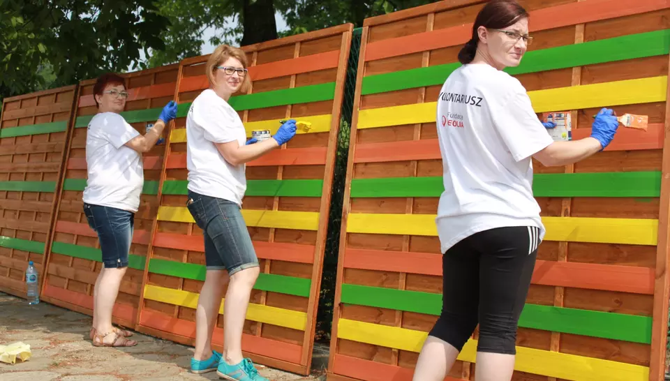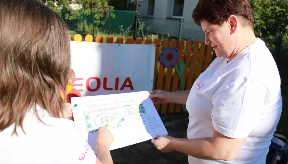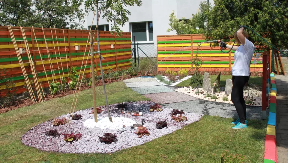 Dzięki temu, że Zielone Podwórko Veolii powstało w pierwszej połowie lata, przedszkolaki mogą już spędzać czas wśród bogatej roślinności. Wcześniej niezagospodarowany szary skwer zmienił się w kolorowe i urocze miejsce. Wolontariusze ustawili i pomalowali płot, rozmieścili elementy dekoracyjne w postaci lubianych przez dzieci zwierząt. Przedszkole otrzymało również zestaw głośników, które będą pomocne