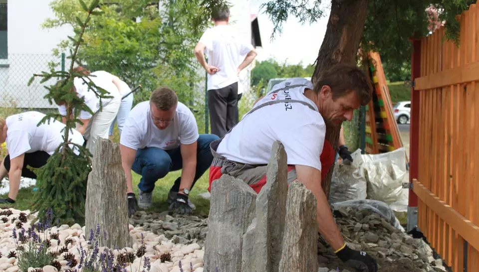 i przystąpili do różnych prac począwszy od ciężkich prac ziemnych poprzez malowanie ogrodzenia i nasadzenia. Wspólna praca i spędzenie czasu poza biurem były doskonałą okazją do lepszego wzajemnego poznania się, pokazania swoich umiejętności organizacyjnych i "ogrodniczych"